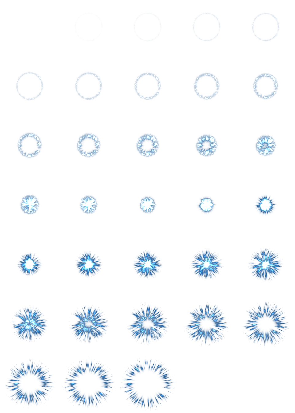 粒子翻页适合再现复杂的效果,如烟雾、火焰、爆炸。它们还可以通过使每个粒子使用不同的纹理,来引入随机纹理变化。你可以在线寻找现成的粒子翻页图,或使用外部工具预渲染它们,例如 Blender 或 EmberGen 。